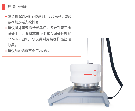 ? 模塊配有外置探針孔,搭配DLAB加熱磁力攪拌器可實現外部精確控溫;