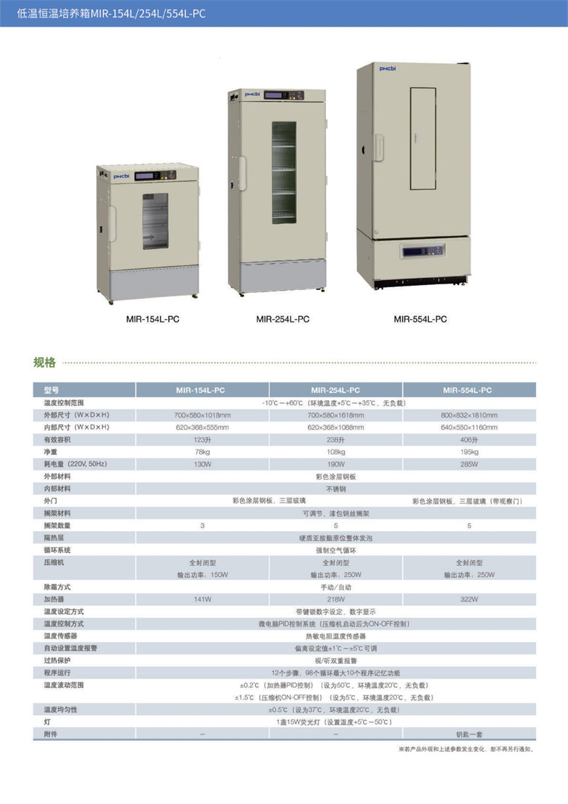特點…… 帶指示燈的計時控制;裝配有帶日光燈(15Wx1個)的開關程序計時控制器;精確穩定的溫度環境 另通過燈照組件(MIR-L15)在箱體頂部加裝3個或更 ;多燈管,在光源下30cm,可達約3000lx。·微電腦溫度控制:低溫恒溫培養箱搭載高精度微電 ·關注環境 ;