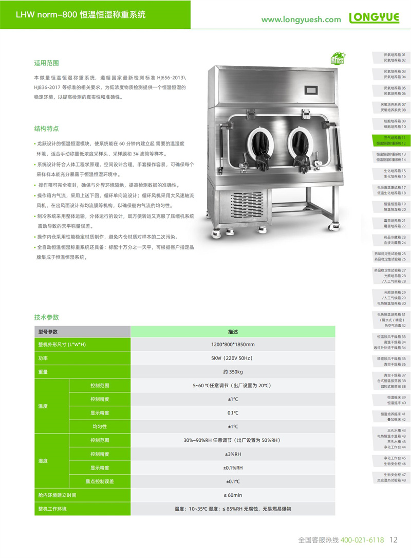 本 微 量 恒 溫 恒 濕 稱 重 系 統, 遵 循 國 家 最 新 檢 測 標 準 HJ656-2013\HJ836-2017 等標準的相關要求,為低濃度物質檢測提供一個恒溫恒濕的穩定環境,以提高檢測的真實性和準確性。