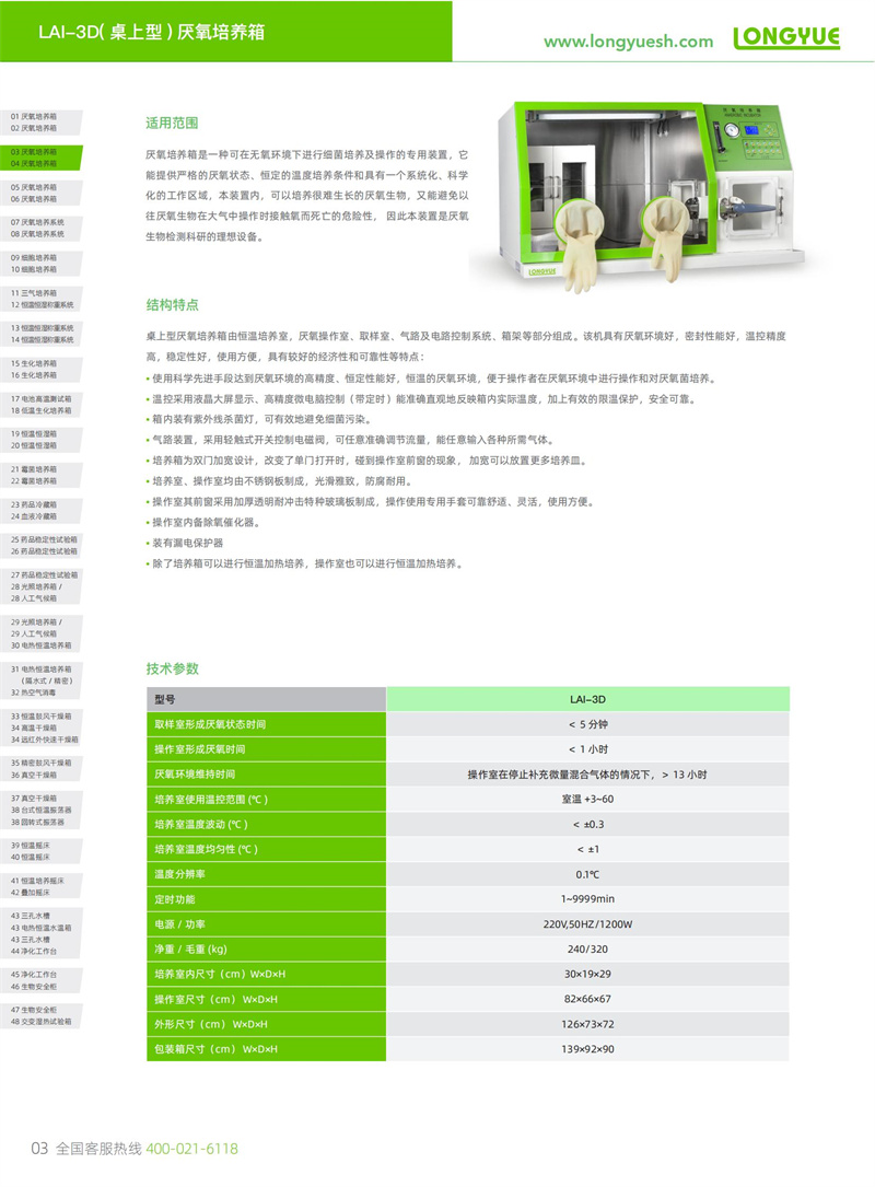 上海龍躍LAI-3D(桌上型)厭氧培養(yǎng)箱由恒溫培養(yǎng)室,厭氧操作室、取樣室、氣路及電路控制系統(tǒng)、箱架等部分組成。該機(jī)具有厭氧環(huán)境好,密封性能好,溫控精度高,穩(wěn)定性好,使用方便,具有較好的經(jīng)濟(jì)性和可靠性等特點(diǎn)。